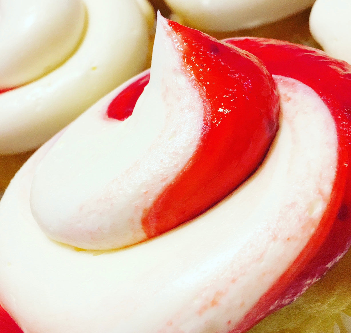 1 Dozen lemon cupcakes with raspberry filling and vanilla raspberry swirl buttercream