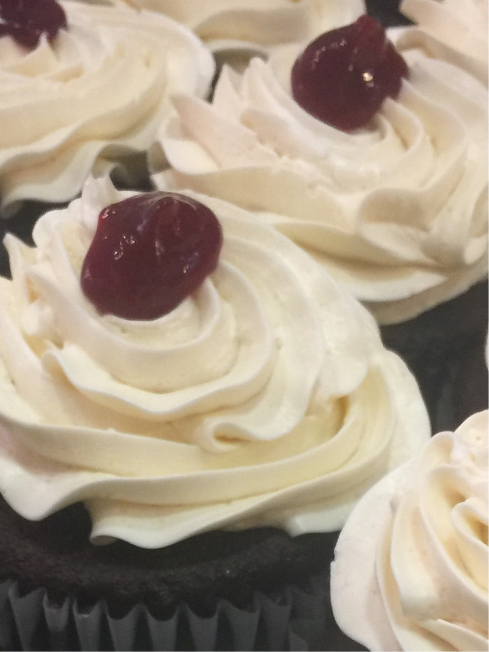 Vegan chocolate cupcakes with raspberry filling and vegan almond buttercream
